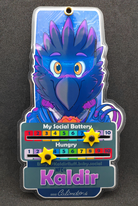 Dein doppelseitig bedrucktes CyberPunk Badge mit Social Batterie Skala und mehr. Kein kompliziertes darüber grübeln, wie man sich fühlt, einfach 1 bis 10 pragmatisch. Im Formular kannst Du die Worte in der Skala und vieles mehr ändern. Darunter auch den Link zum NFC-Tag.